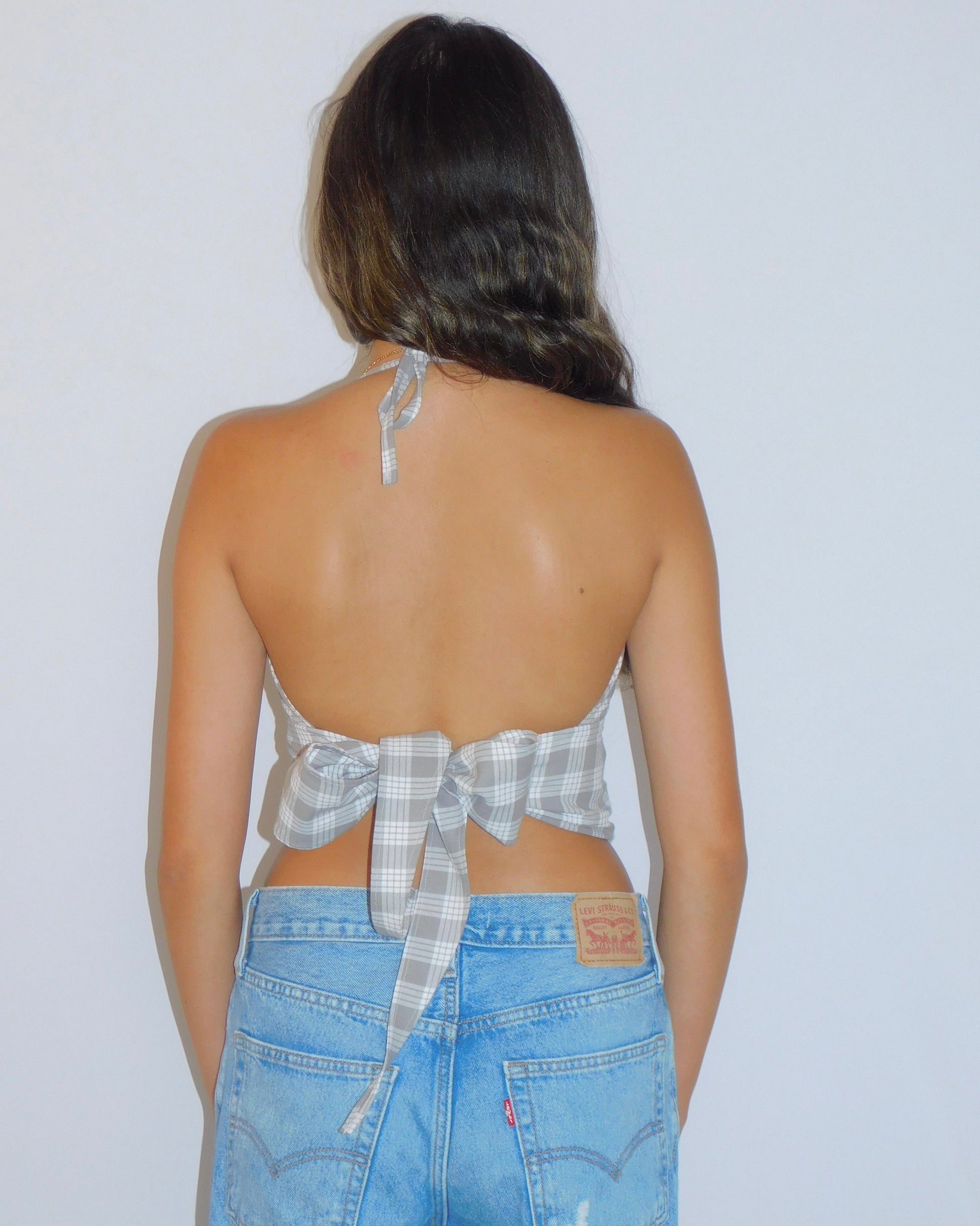 Grey Tie-Back Palaka Halter Top