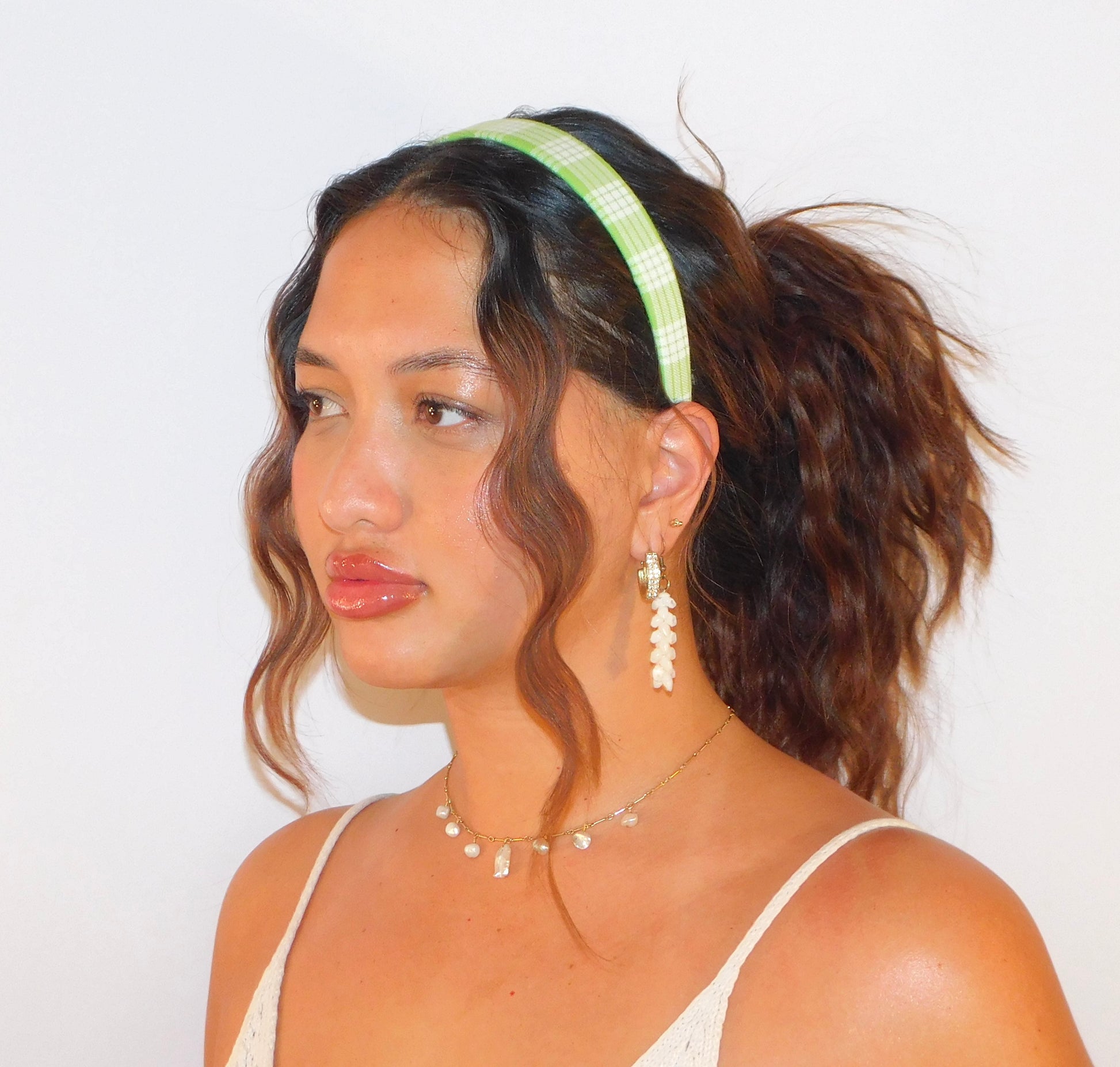 ‘Ōma’oma’o (Lime Green) Palaka Headband - Skinny 1 inch